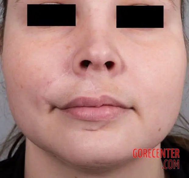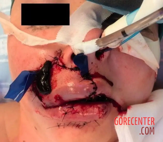 28-year-old woman was attacked by an aggressive dog that bit her in the face. It literally tore off part of her nose and upper lip. The victim had to undergo plastic surgery. Thanks to the excellent work of the surgeons, the torn-off tissue was successfully reattached. The final photo shows the victim one year later with the injury fully healed.
