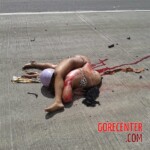 A biker wearing only a bikini crashed into a truck. She died on the spot and her body was left in a really deformed position.