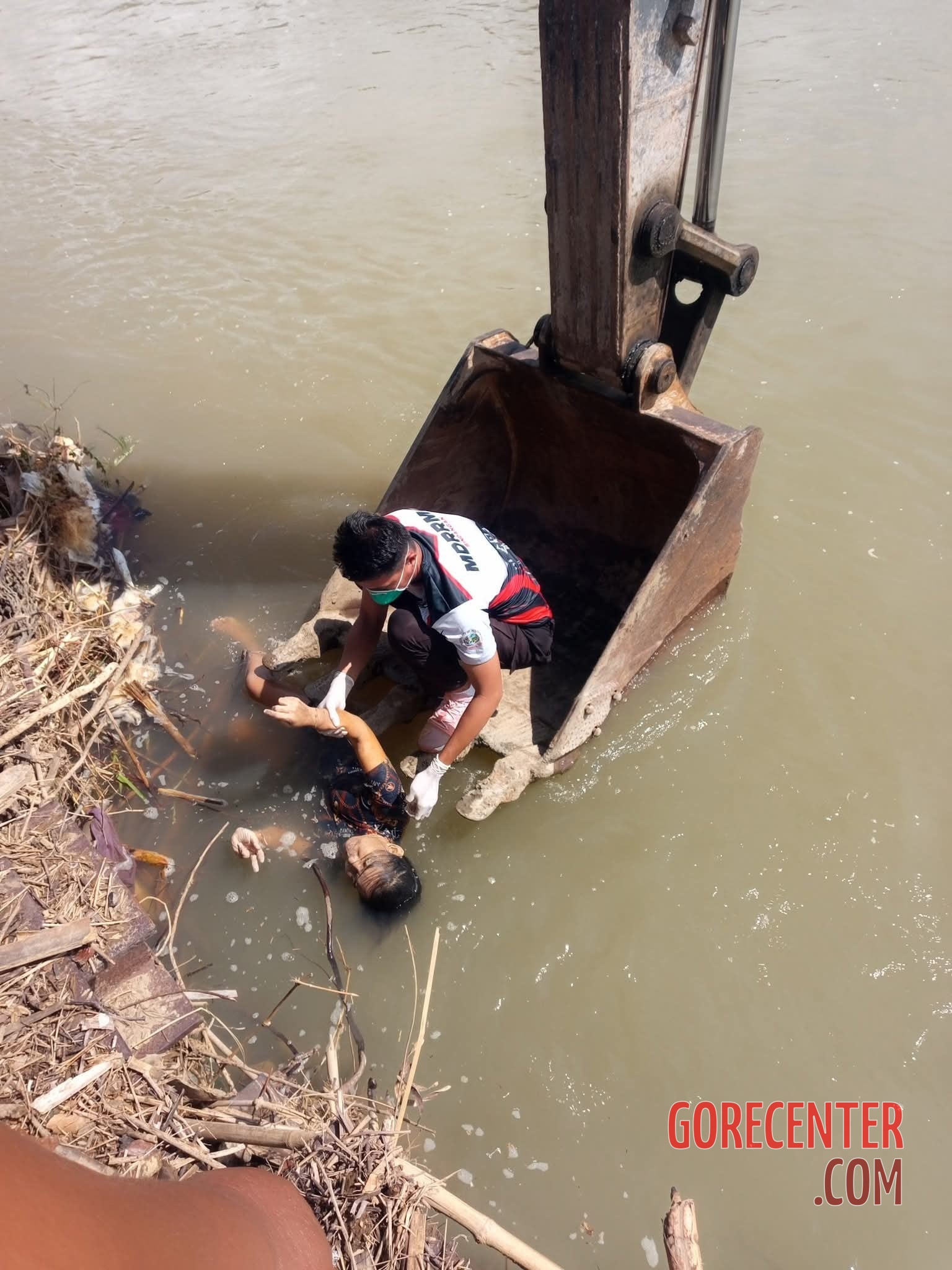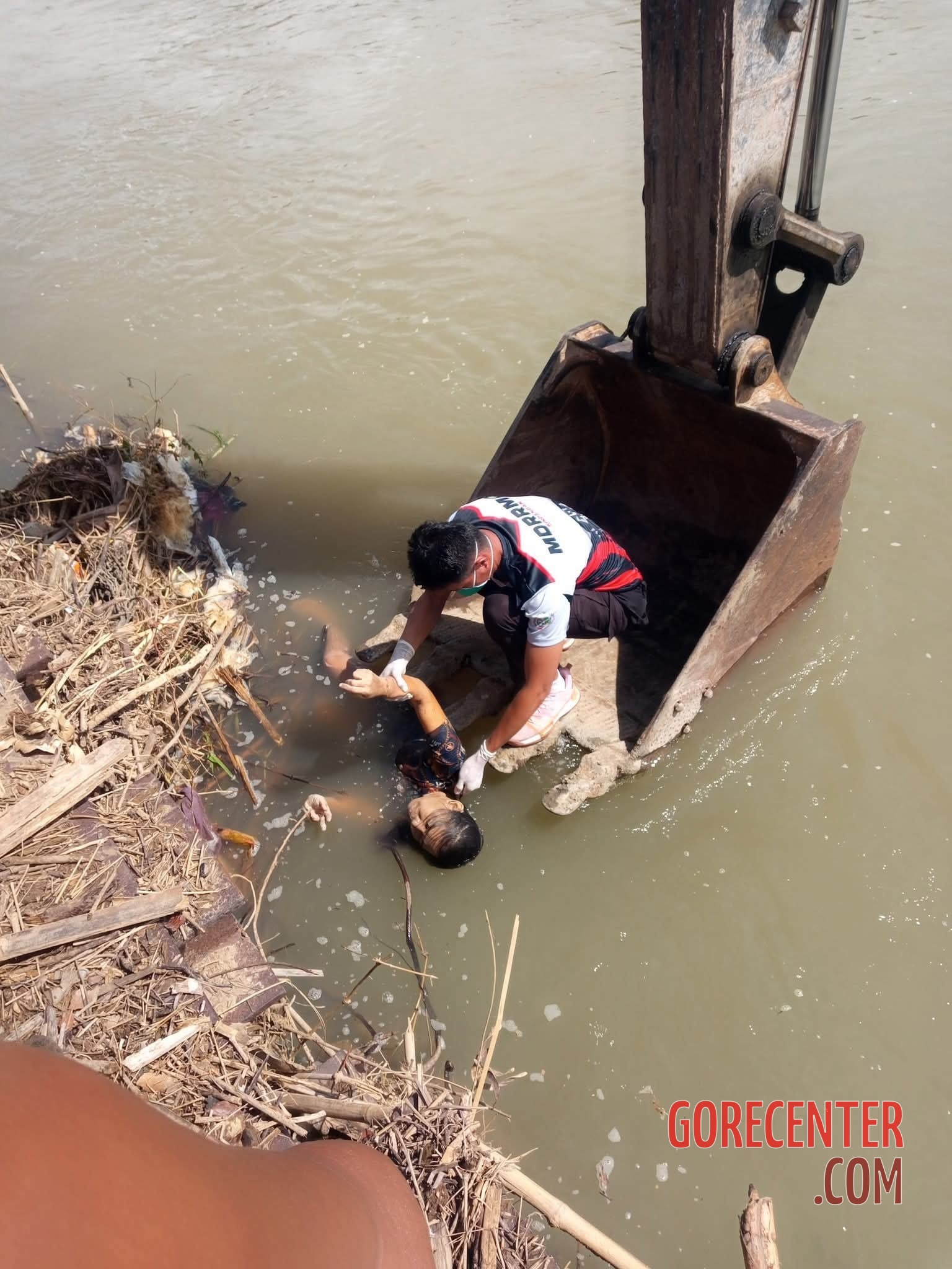 BARANGAY GOLEO, SINDANGAN, PHILIPPINES – OCTOBER 28, 2025 Local residents found the dead body of a woman washed up on the riverbank. Due to the steep slope, an excavator had to assist in retrieving her. The victim was quickly identified as a local resident of the nearby village Barangay Dicoyong. Although the official investigation results are not yet available, many neighbors believe that she took her own life. She reportedly struggled with mental health issues for a long time.