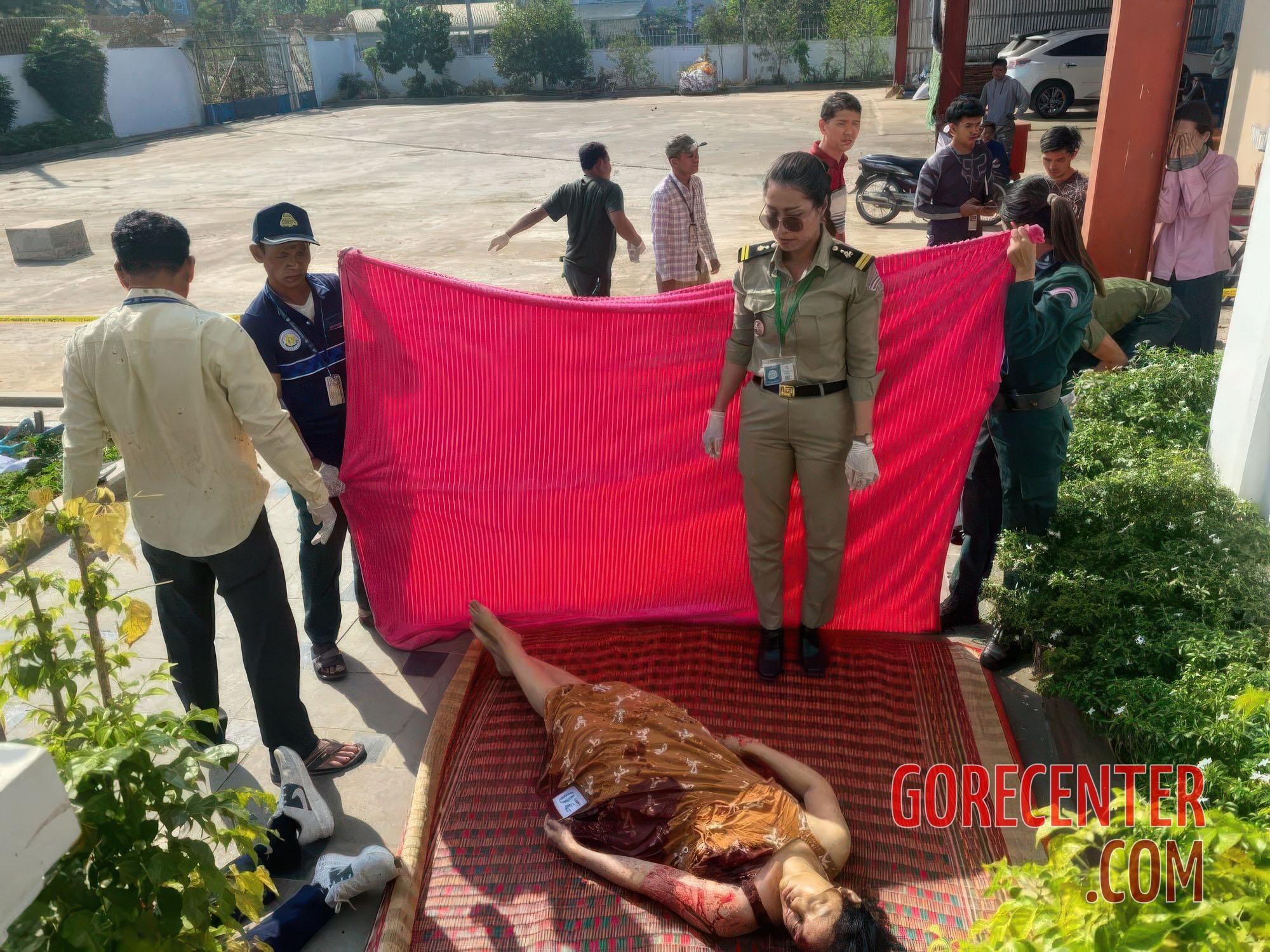 TBOUNG KHMUM, CAMBODIA – MARCH 16, 2026 When the man found out that his girlfriend is cheating on him, he could not control his emotions and reached for a firearm. He shot her lover, then her, and ultimately turned the gun on himself. The incident occurred in a rice warehouse owned by the lover.