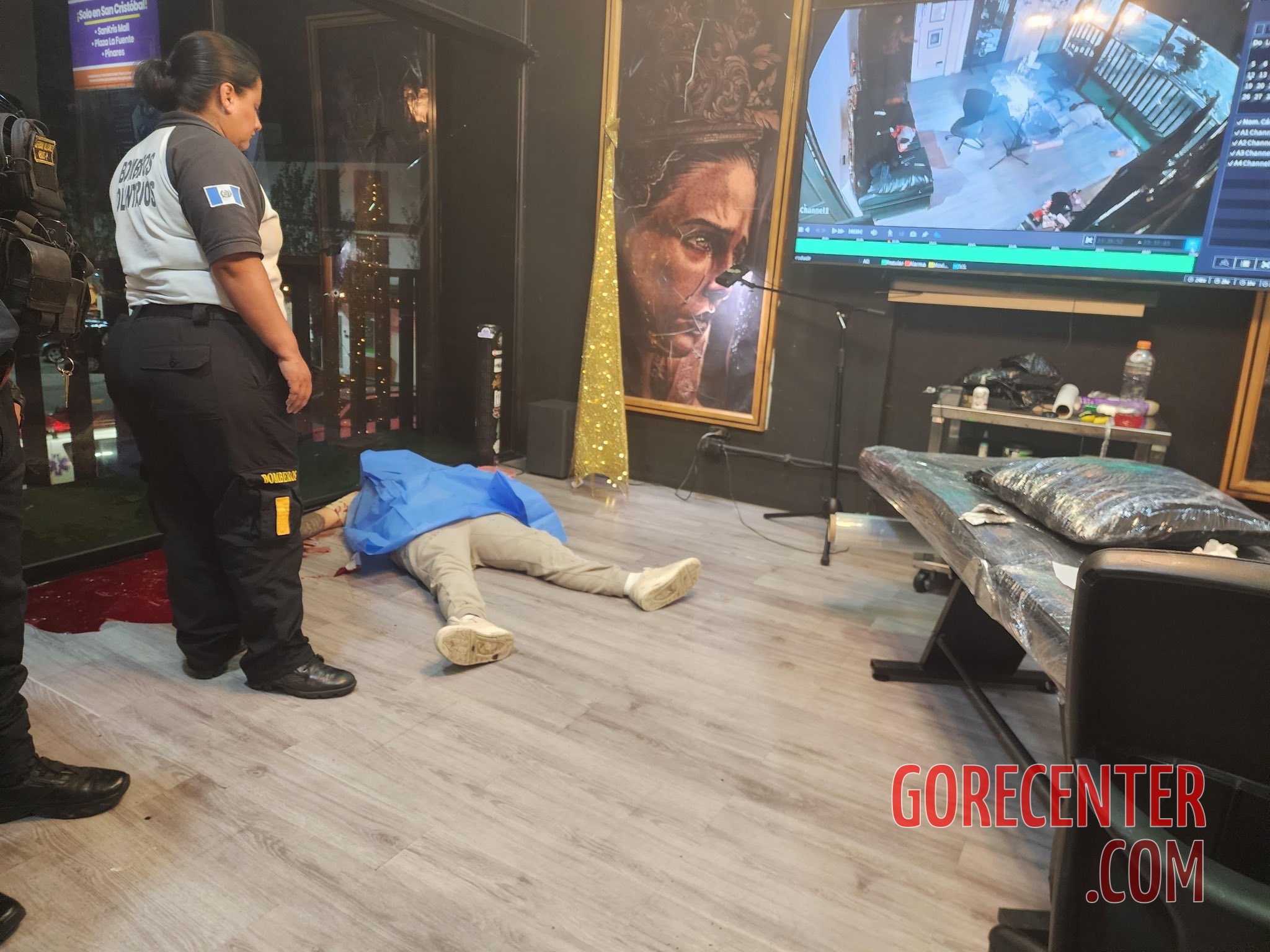 GUATEMALA CITY, GUATEMALA – DECEMBER, 2025 Hitman masked with a motorcycle helmet burst into a tattoo studio in the San Cristóbal district. With several shots he killed the tattoo artist, Colocho Benavides, who was in the middle of tattooing his client. He immediately fled the crime scene with an accomplice on a motorcycle. Volunteer firefighters, who were the first to arrive, confirmed the victim’s death. They also provided assistance to his colleagues and family members who suffered emotional breakdowns.