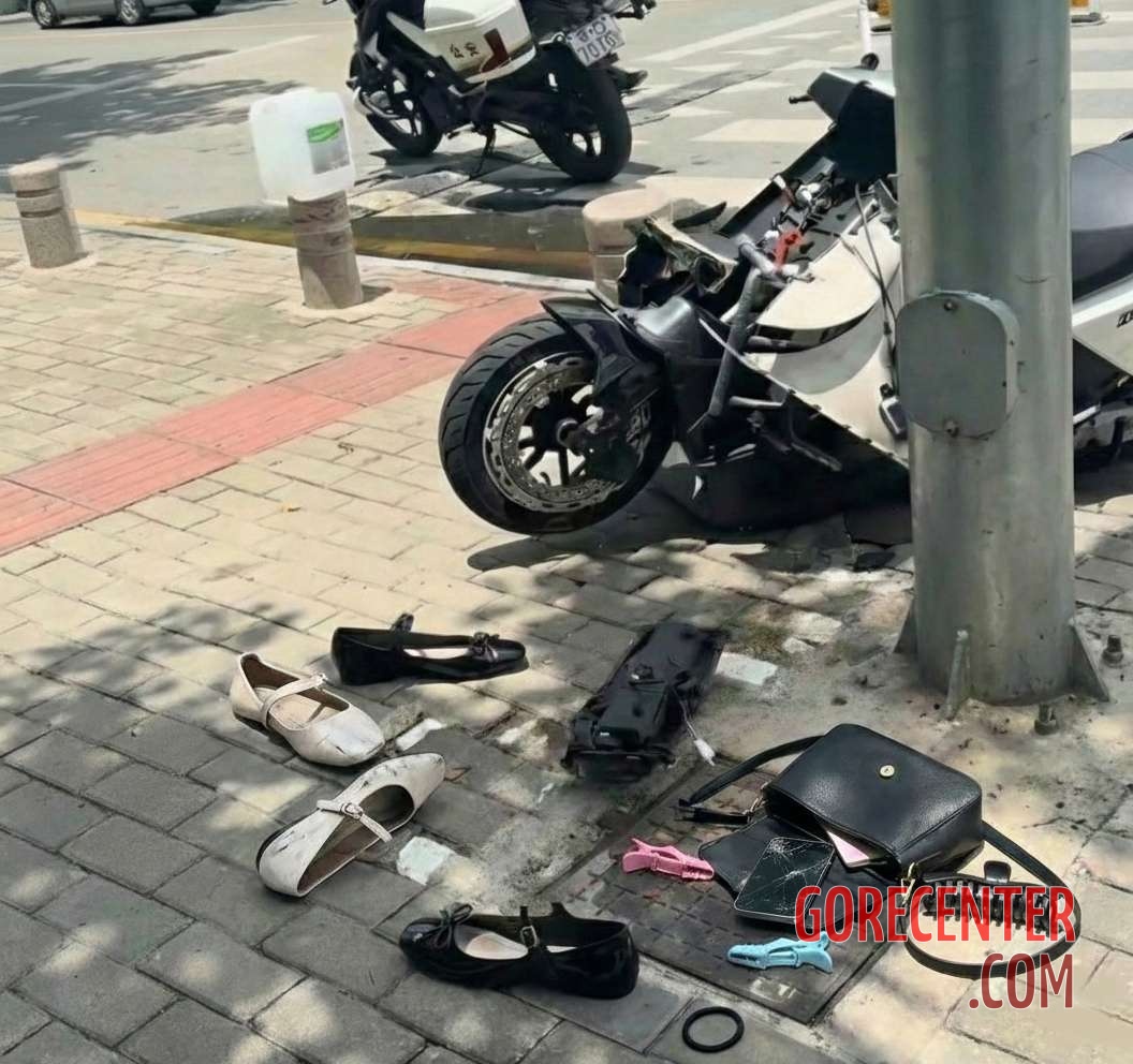 The passenger was thrown about 50 feet (15 meters) onto the sidewalk and remains in critical condition. She suffered severe head trauma and multiple serious leg injuries, including fractures. The electric bike and the victims’ personal belongings were collected as evidence, with the damage highlighting the extreme force of the crash.