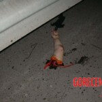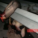 A traffic accident threw a woman onto the barriers. The force of the impact amputated her limb and left the rest of her body hanging from the guardrails.