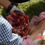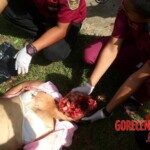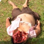 A woman committed suicide by jumping from a tall building. It landed right on the head. Her head split open and her brain flew out.